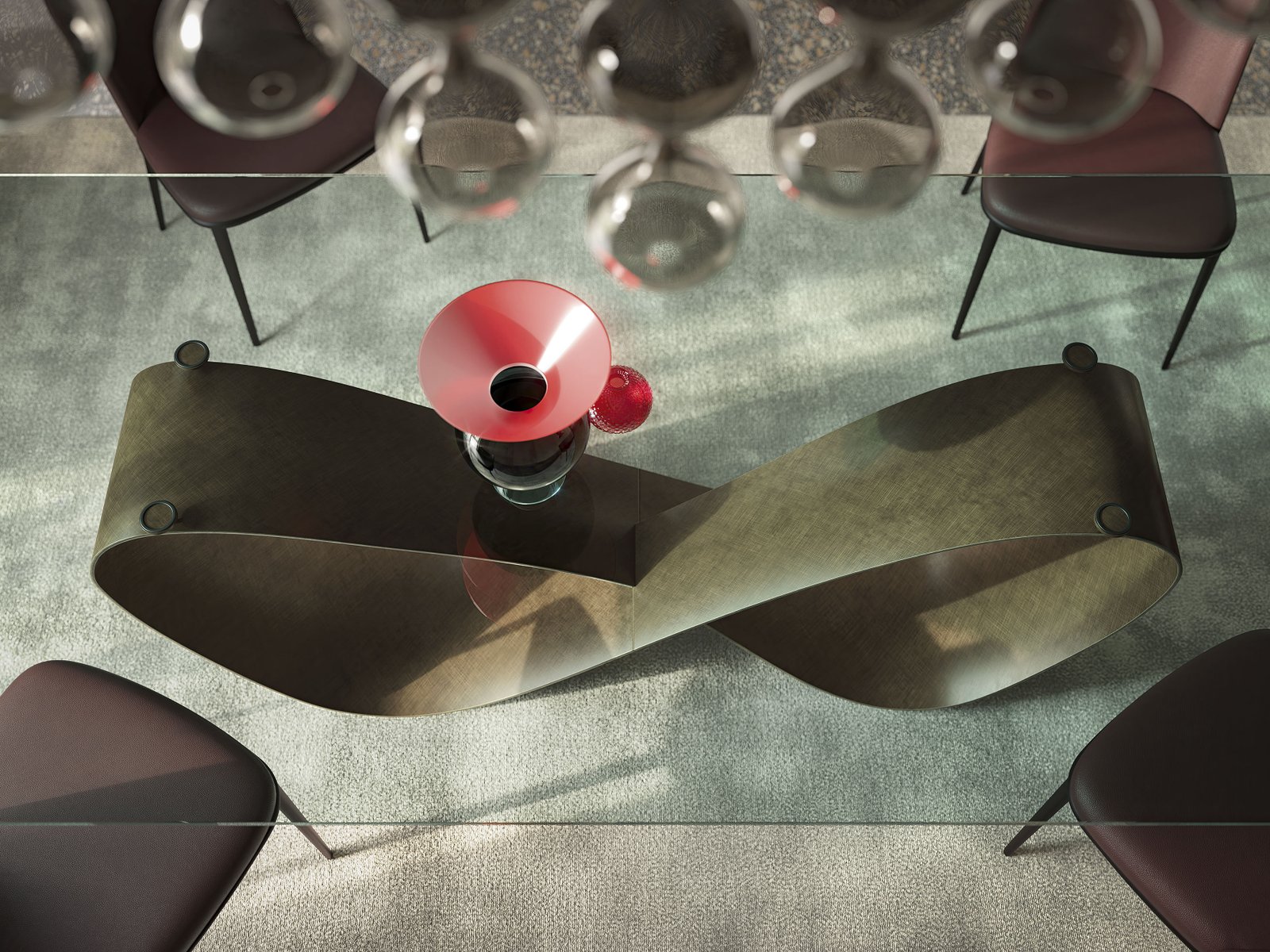 La table Butterfly est un projet d'architecture sinueux qu'il est impossible de ne pas remarquer. La base en acier de cette table design devient la star de la salle à manger moderne avec un style sculptural et une référence à l'élégance de la nature. Le plateau en verre est posé sur le piètement, son aspect fragile crée un contraste avec l'association audacieuse et révolutionnaire des courbes et des bords. Dans la version Butterfly Keramik, la table est encore embellie par le plateau en céramique Marmi , disponible en plusieurs nuances exclusives.