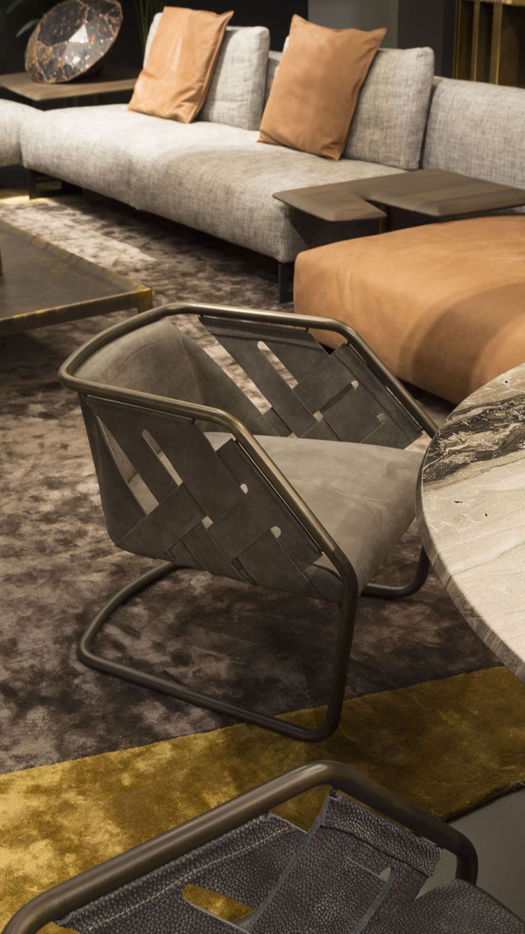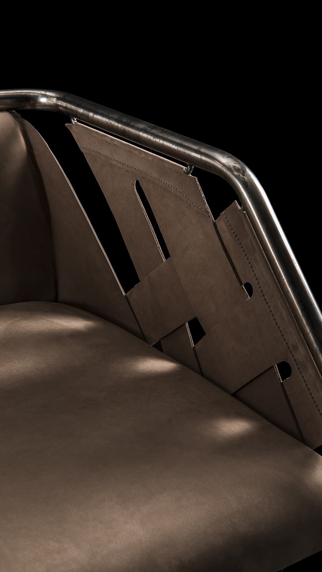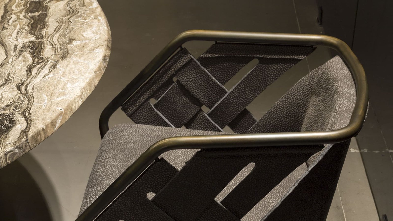 Des contrastes forts, presque audacieux, s'affrontent dans une tension harmonieuse, donnant naissance à la chaise Strip, signe d'une originalité distinctive, d'une esthétique jeune et sophistiquée. Une pièce interprétée avec une juxtaposition inattendue de matériaux et de textures en termes de contemporanéité raffinée, selon des standards inexplorés.
