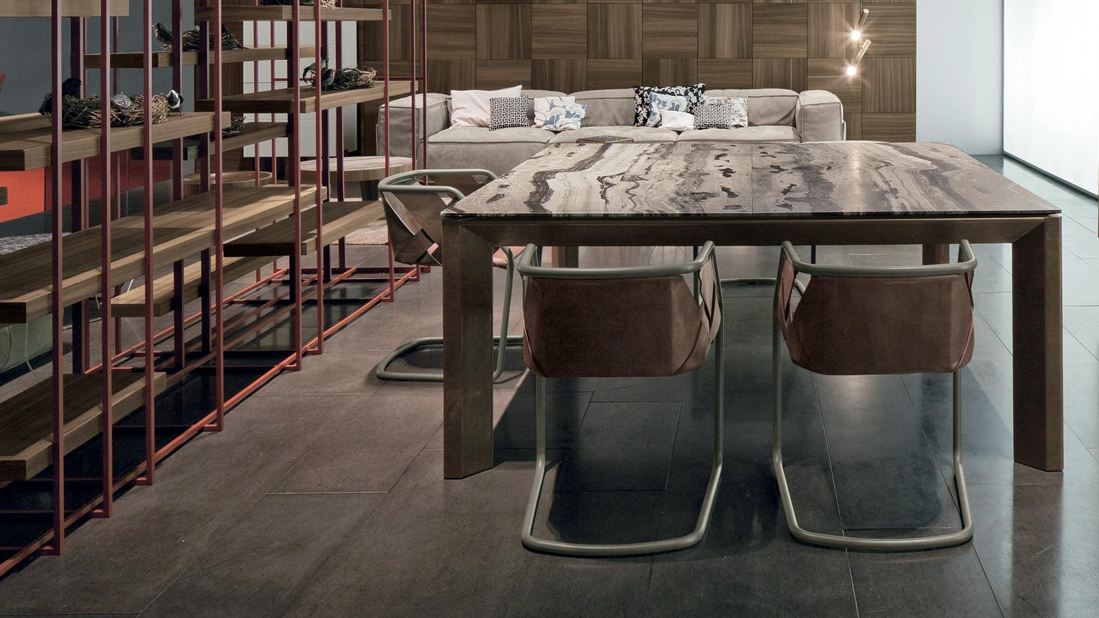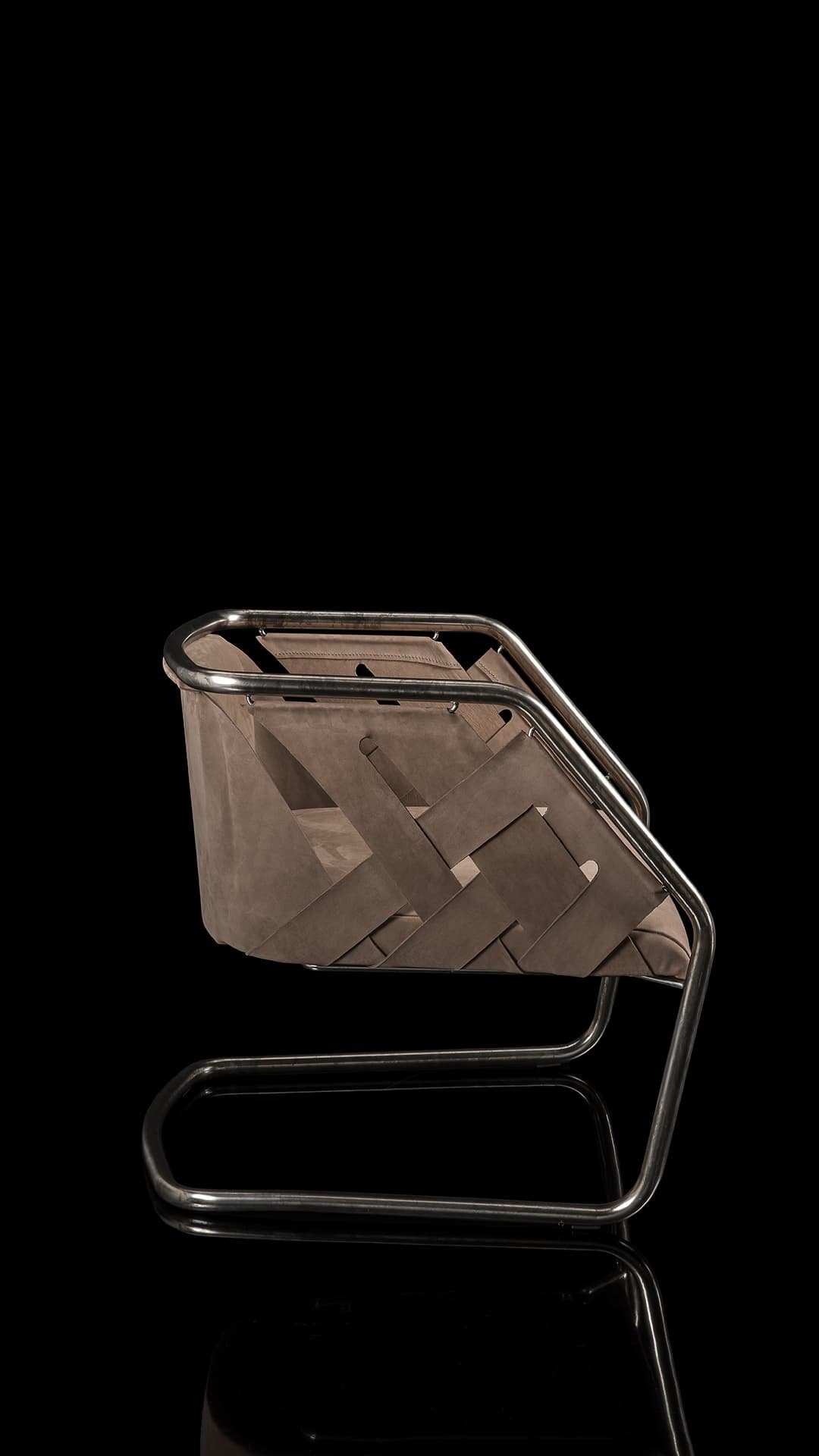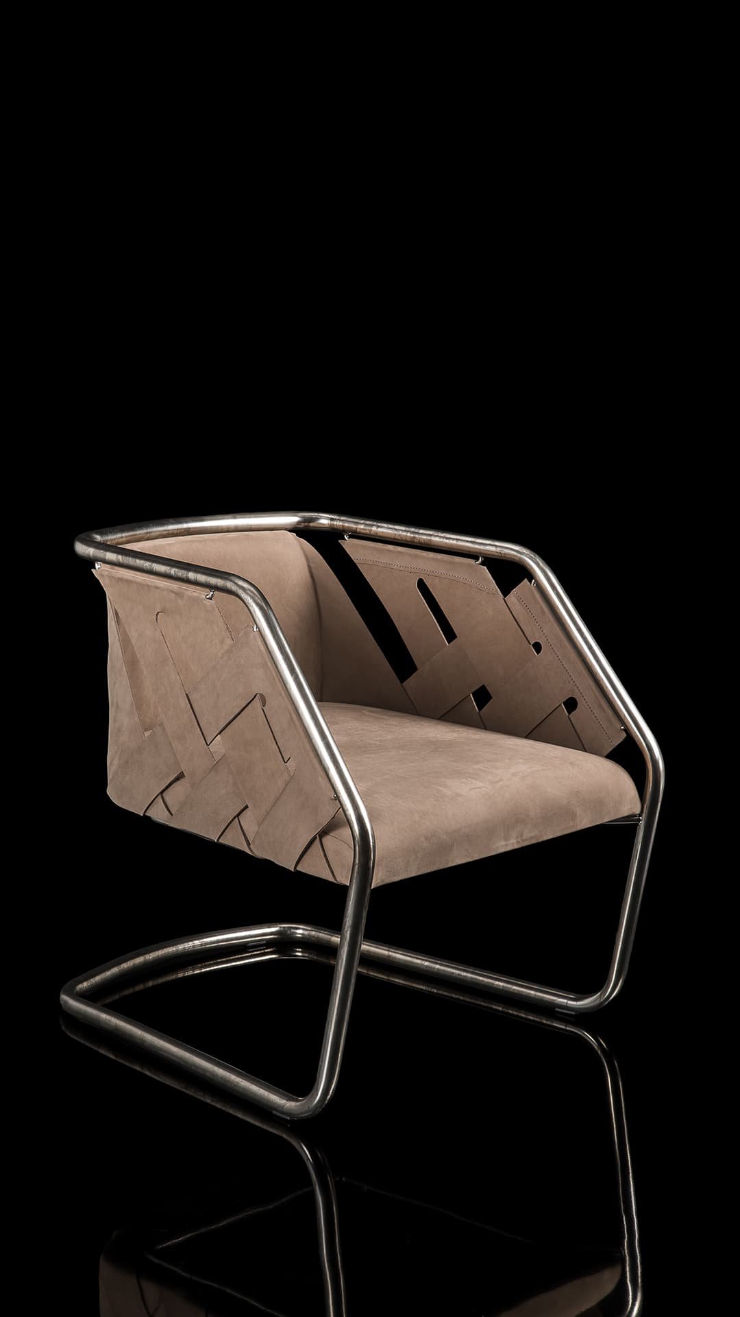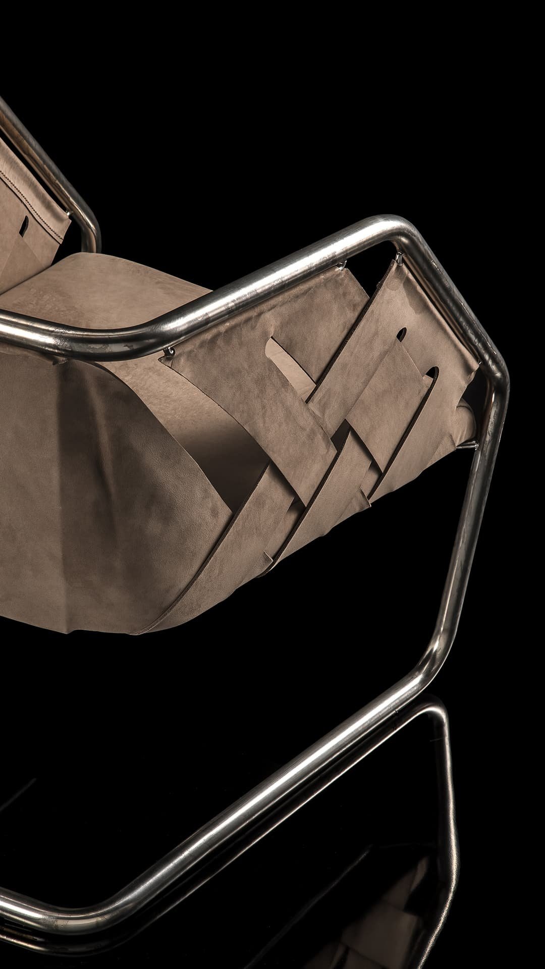 Des contrastes forts, presque audacieux, s'affrontent dans une tension harmonieuse, donnant naissance à la chaise Strip, signe d'une originalité distinctive, d'une esthétique jeune et sophistiquée. Une pièce interprétée avec une juxtaposition inattendue de matériaux et de textures en termes de contemporanéité raffinée, selon des standards inexplorés.