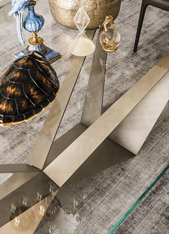 • Cattelan Italia, une table fixe de grand impact visuel. L'originalité et l'élégance sont renforcées par le top en céramique et l'esthétique n'entrave en aucune façon la session, l'équilibre entre la créativité et le nouveau design la rend appropriée à n'importe quel environnement . La finition de la base Acier laqué transparent, identifie un revêtement transparent sur les matériel en fer brut. La présence de taches, plus ou moins évidentes, variations de couleur, rayures et bords irréguliers sont caractéristiques du traitement spécial de la matière et ne sont pas à considérer comme un défaut.