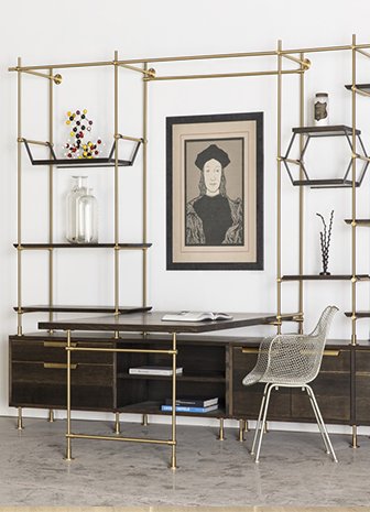 Une extension naturelle de notre système d'étagères pour collectionneurs, notre bureau modulaire intègre une surface de bureau et une série d'options de stockage dans le langage de notre étagère pour collectionneurs. Cette unité offre une personnalisation fonctionnelle et conceptuelle pour s'assurer que votre espace de travail reflète la sensibilité et la créativité qu'il mérite.